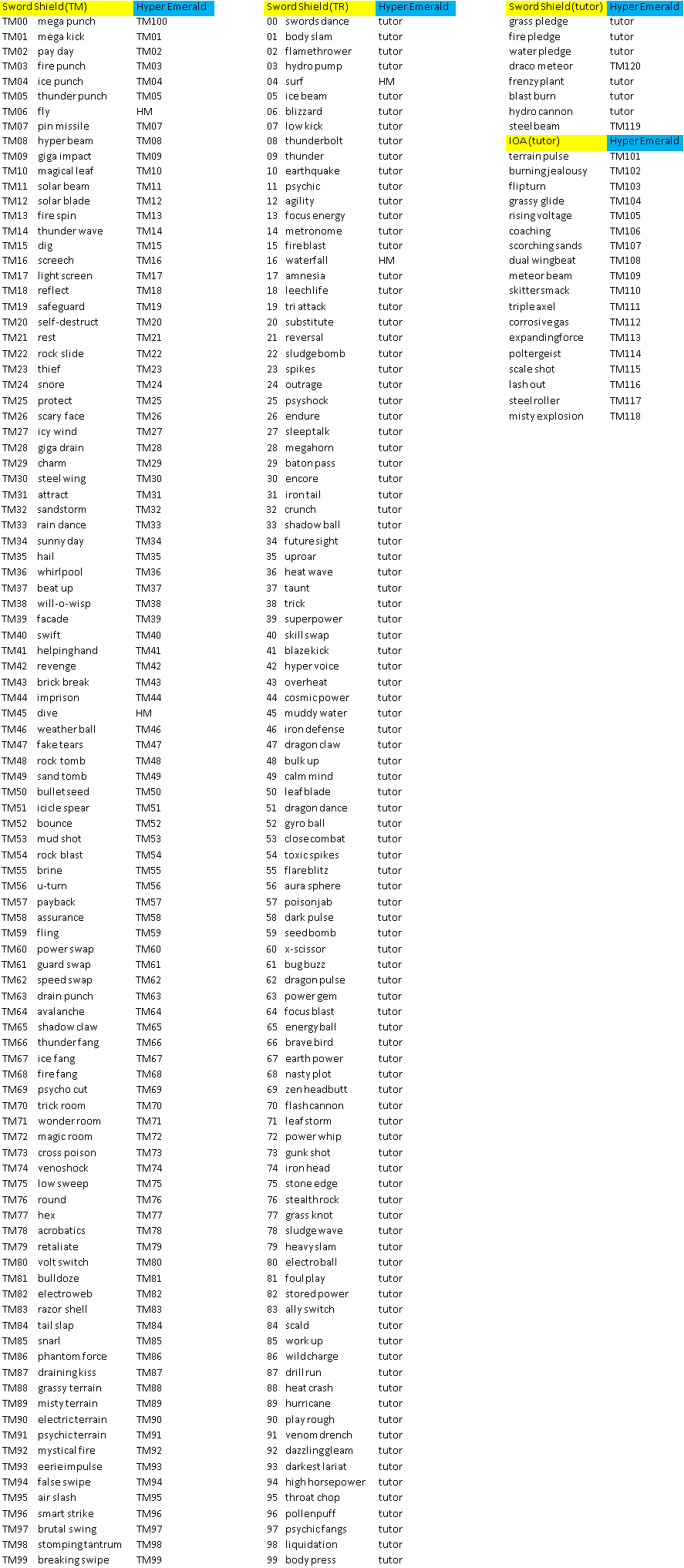 Lista de TMs/TRs da Hyper Emerald V5: